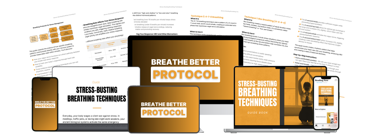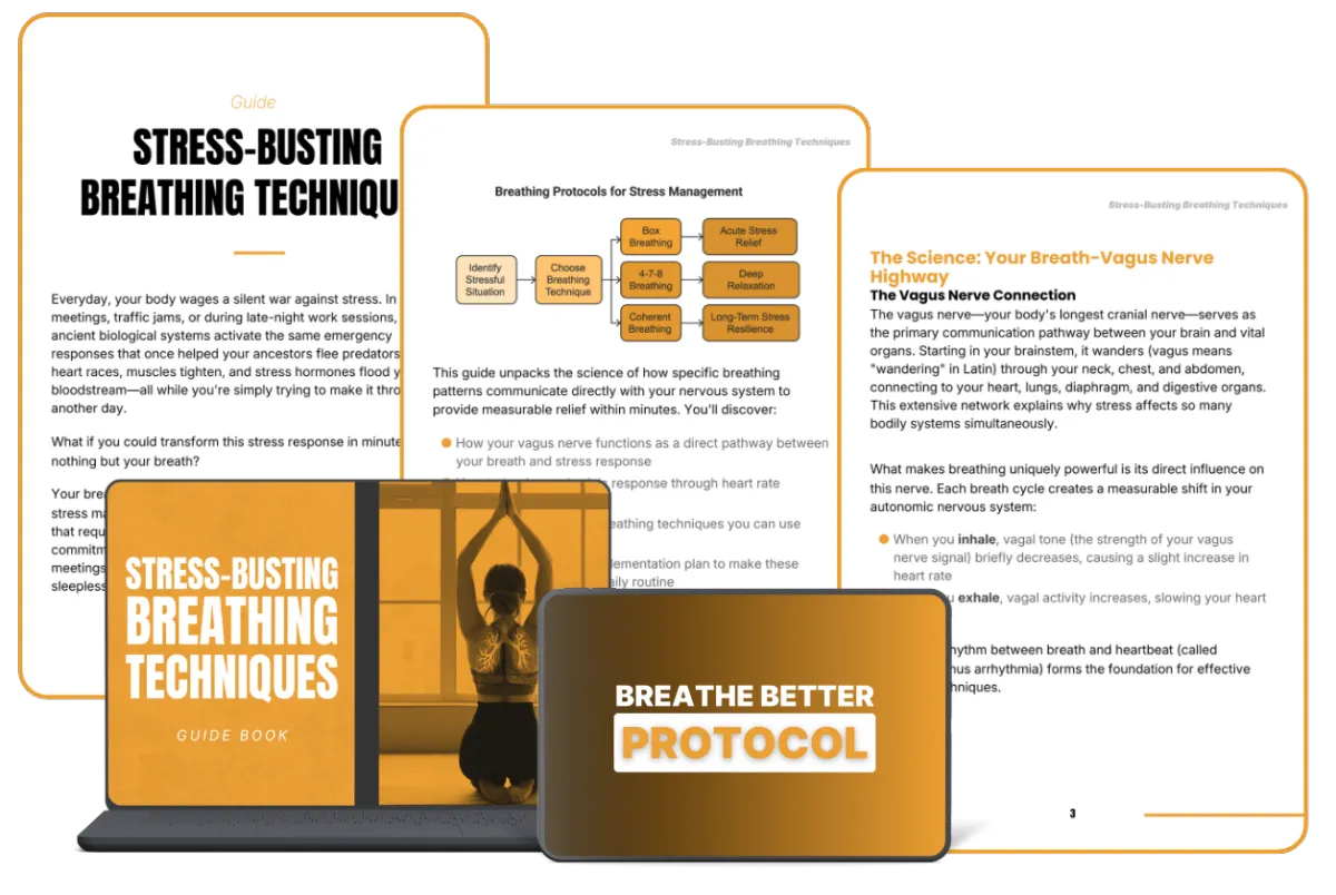 That framework became the foundation of Stress Busting Breathing Techniques and the Breathe Better Protocol. It is the system I use to stay grounded, respond calmly under pressure, and turn stress into something I can regulate intentionally instead of something I constantly react to.