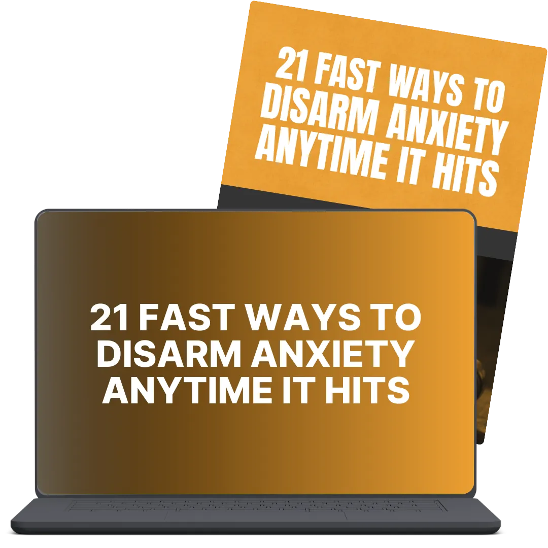 BONUS #2: 21 Fast Ways to Disarm Anxiety Anytime It Hits: A practical, rapid-response toolkit you can use the moment anxiety shows up. These quick techniques help interrupt spirals, calm your body fast, and regain control using breathing, grounding, and simple physical resets that work anywhere.